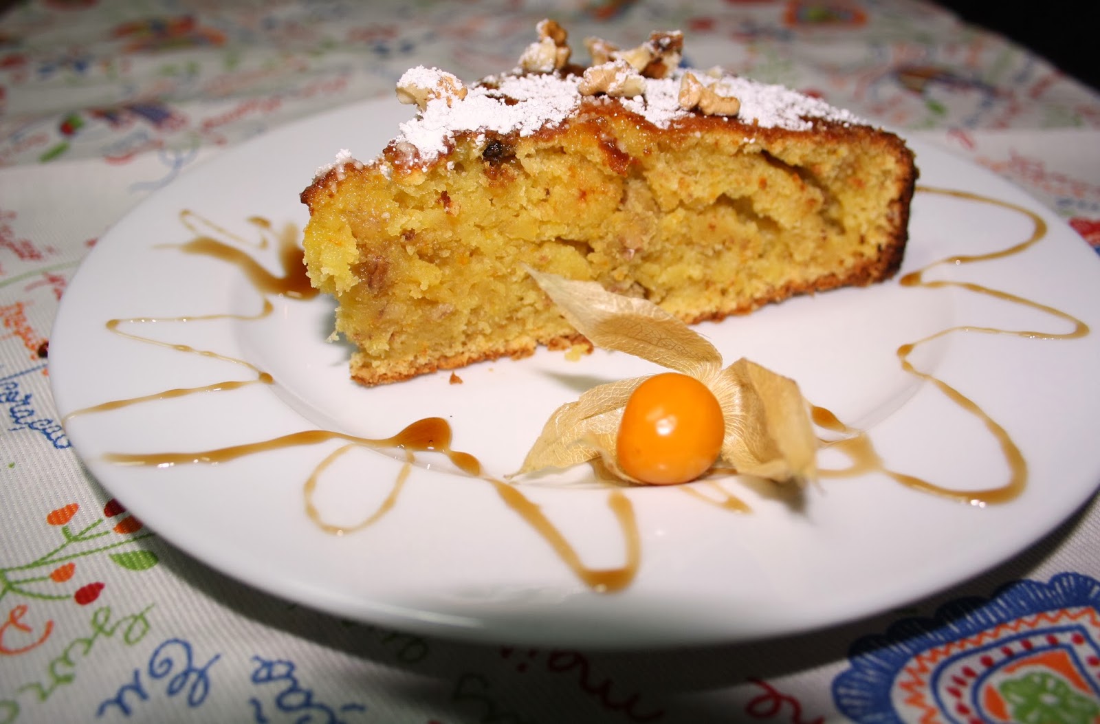 Este é um bocadinho diferente de um bolo de laranja normal, tem o toque da noz que, para mim, faz toda a diferença. A própria textura do bolo é diferente de um bolo básico de laranja. Fica mais pesado, mais molhado. Aconselho-vos a experimentar!