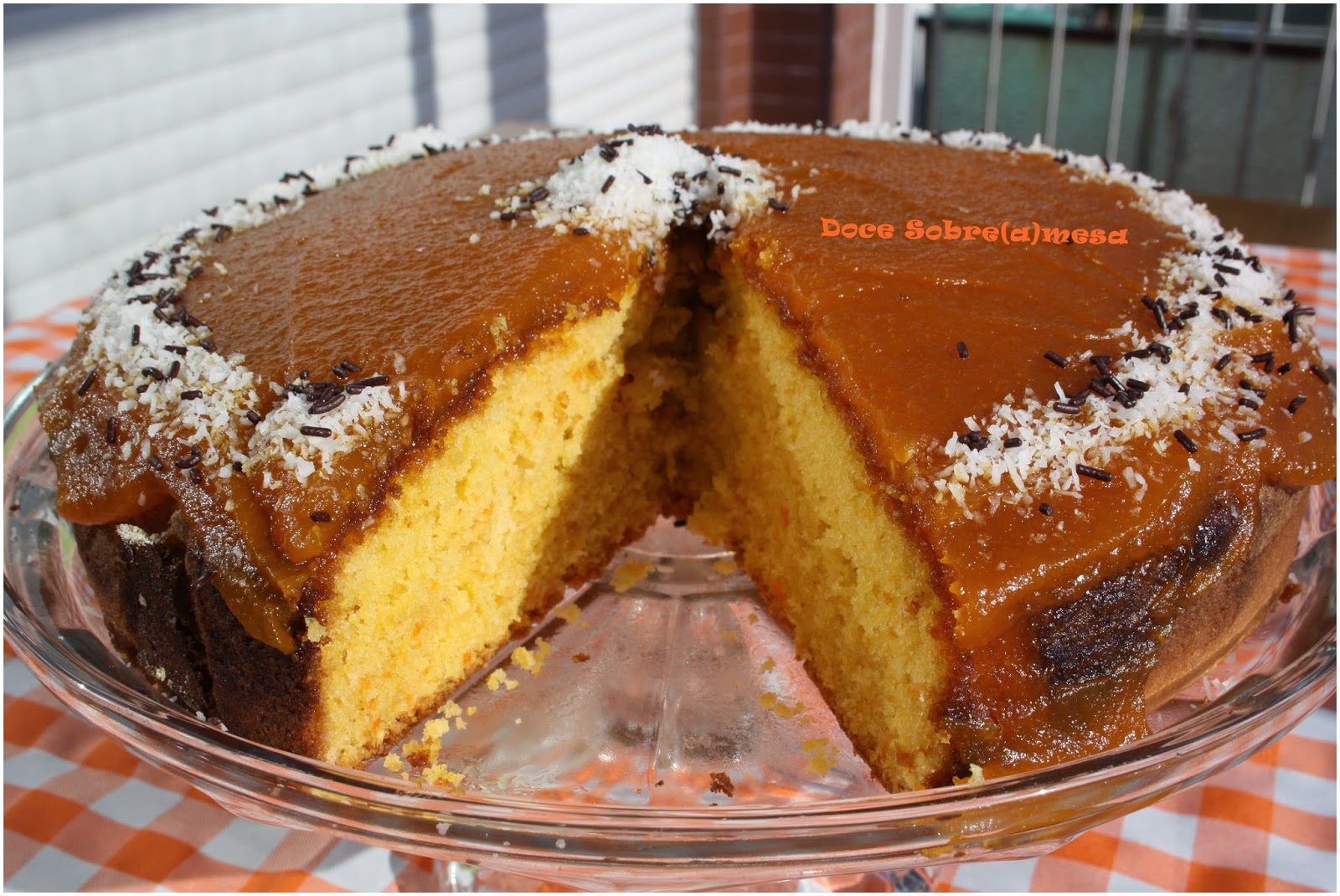 Desenforme o bolo (apenas quando estiver morno!), cubra-o com doce de cenoura e decore-o a gosto.