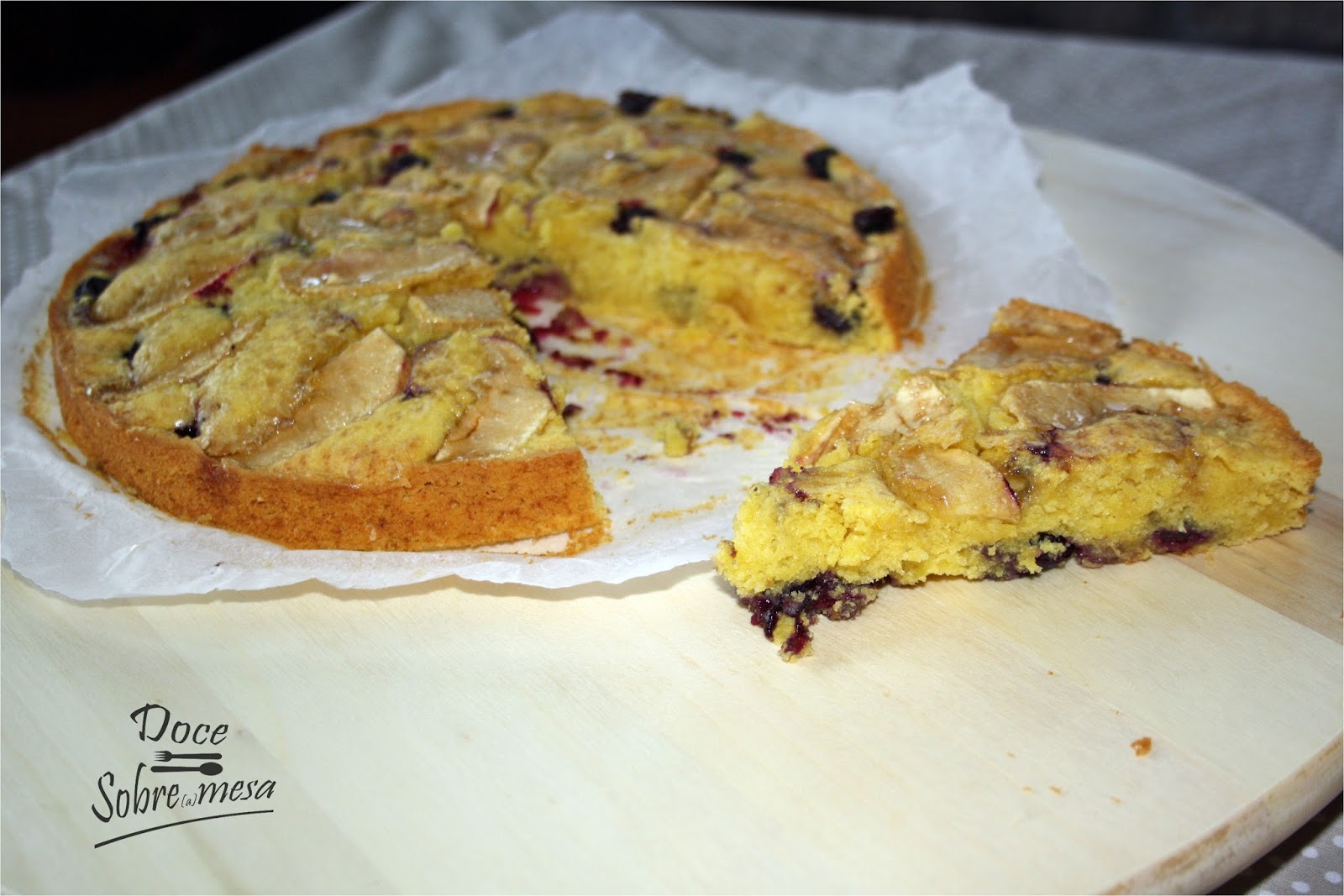 Na semana passada estava a ver o programa da Donna Hay, o Fast, Fresh and Simple, que dá no canal 24Kitchen, quando vi este bolo que desde logo me decidi a experimentar e partilhar com vocês. E é por isto que gosto de ter sempre alguns frutos congelados... Tenho sempre mirtilos, framboesas, morangos e bananas congeladas no meu congelador. Neste caso deu jeito, mal acabou o programa fui para a cozinha experimentar mais uma receita desta fantástica senhora. A receita não podia ser mais fácil e rápida! Deixo-vos, então, com o resultado =)