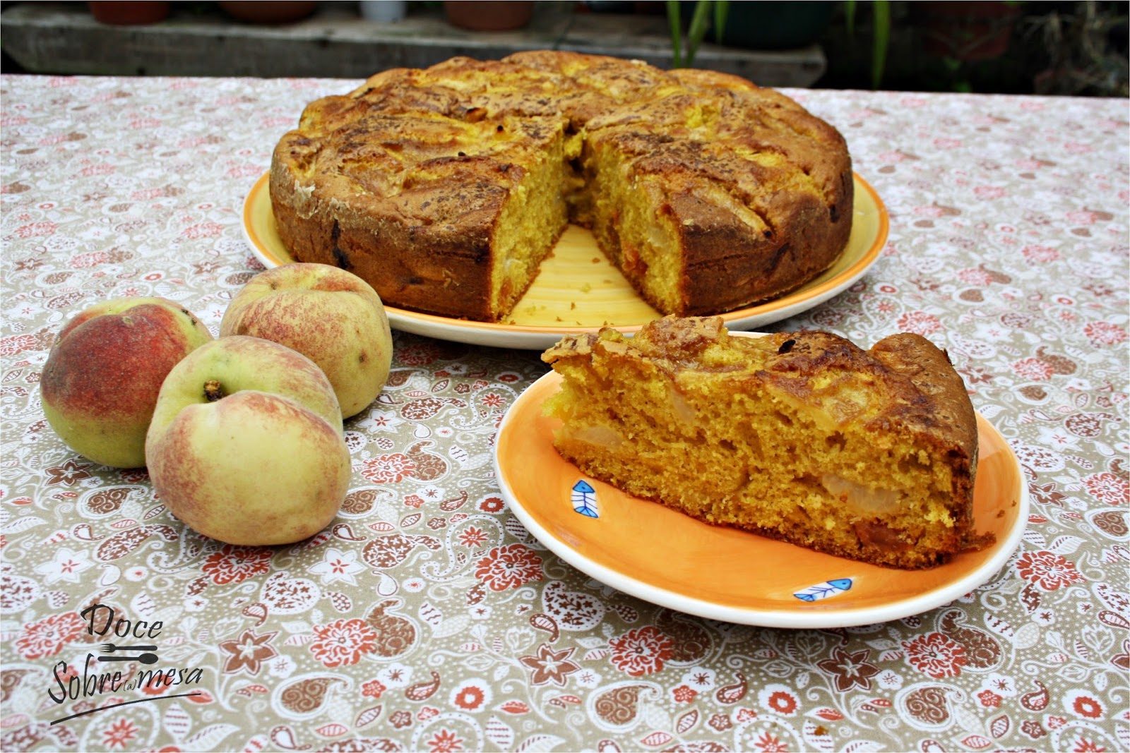 Tenho cá em casa imensos pêssegos, tantos que sinceramente já nem sei o que lhes fazer (aceitam-se sugestões). Já fiz bolo, que é o que vos venho apresentar aqui hoje, já fiz sumo, já fiz compota... enfim, continuarei nas experiências culinárias com pêssegos até acabarem =P E são tão bons, tão docinhos!