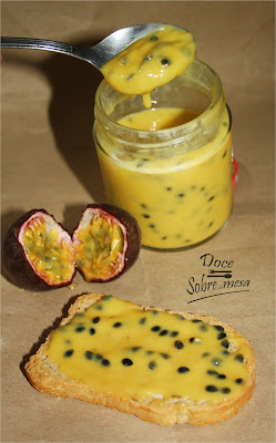 Este ano tive imensos maracujás, ao ponto de já não saber bem o que fazer com eles. Lembrei-me de fazer este curd, que saiu maravilhoso, sendo uma óptima sugestão para aqueles maracujás que já estão a ficar muito maduros. Supostamente deveria de levar mais ovos/gemas, e menos maracujás, mas a ideia era fazer um curd mais "leve", e acabou por resultar bem... ficou com bastante consistência, pouco doce (os mais gulosos devem acrescentar um pouco mais) e com um sabor fantástico dos maracujás. Exactamente o que procurava! Para um curd mais "composto" podem tirar à receita 2 maracujás e adicionar 1 gema.