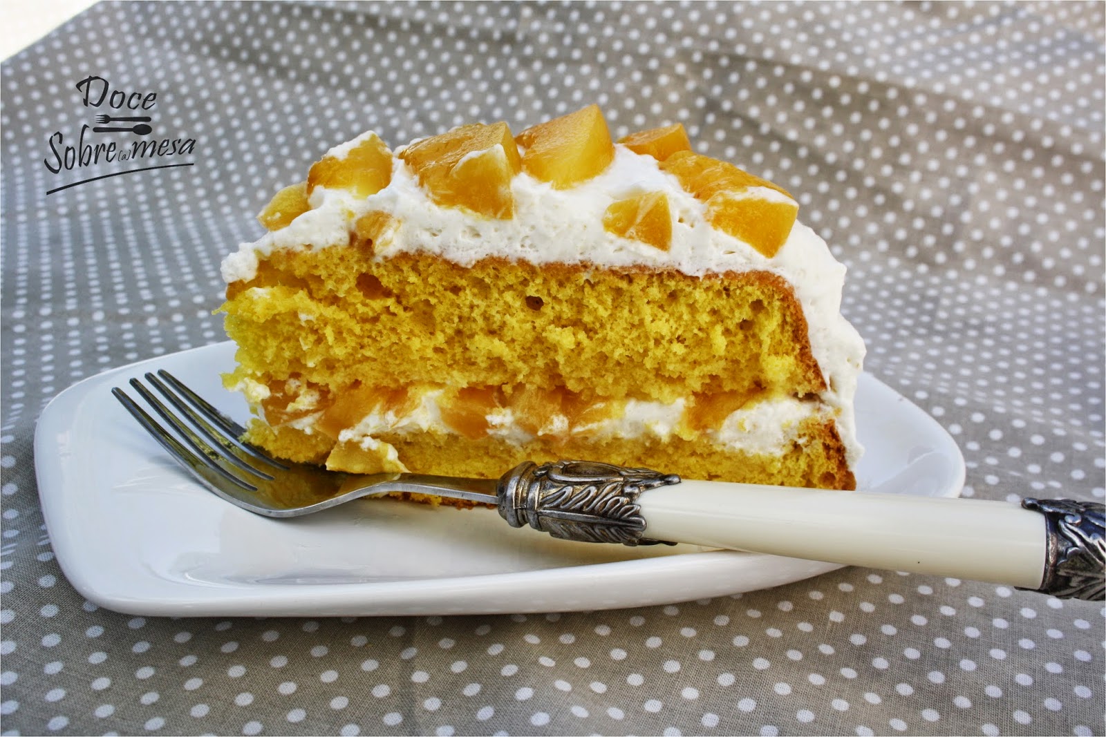 - Desenforme o bolo e deixe arrefecer totalmente. Corte ao meio, no sentido horizontal. e regue com metade da calda dos morangos (só calda, sem fruta). Cubra com o recheio e coloque a outra metade do bolo por cima;