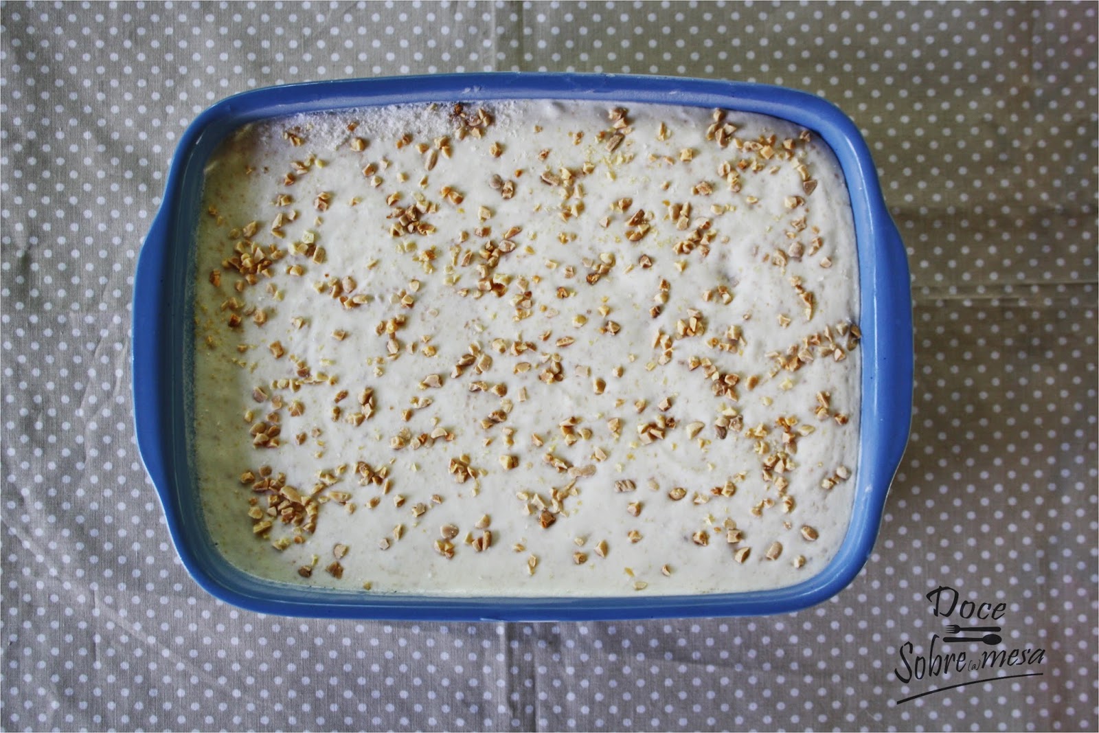 - Adicione o fermento e misture novamente. Coloque a massa na forma e reserve;